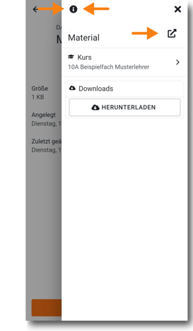 Für einige Aktivitäten solltest Du in den Browser wechseln, zum Beispiel weil sich eine Aktivität in der App nicht gut bearbeiten lässt oder es eine Fehlermeldung gibt. Wähle das Informationszeichen (i) und dann das Weiterleitungszeichen (Box mit Pfeil), um die Aktivität im Browser zu öffnen. Manchmal kann eine Aktivität in der App gar nicht geöffnet werden. Dir wird dann direkt das Weiterleitungszeichen angezeigt.
