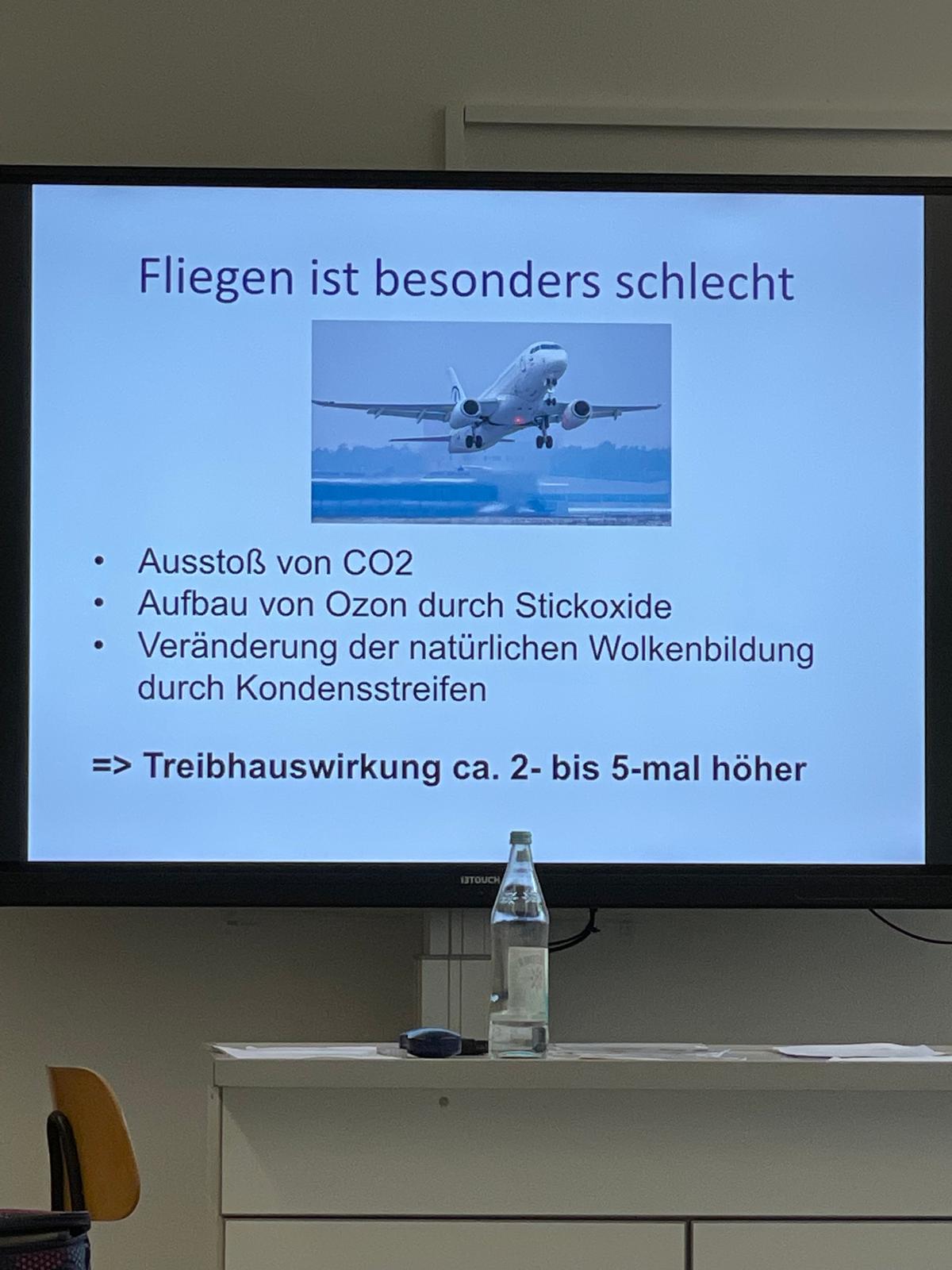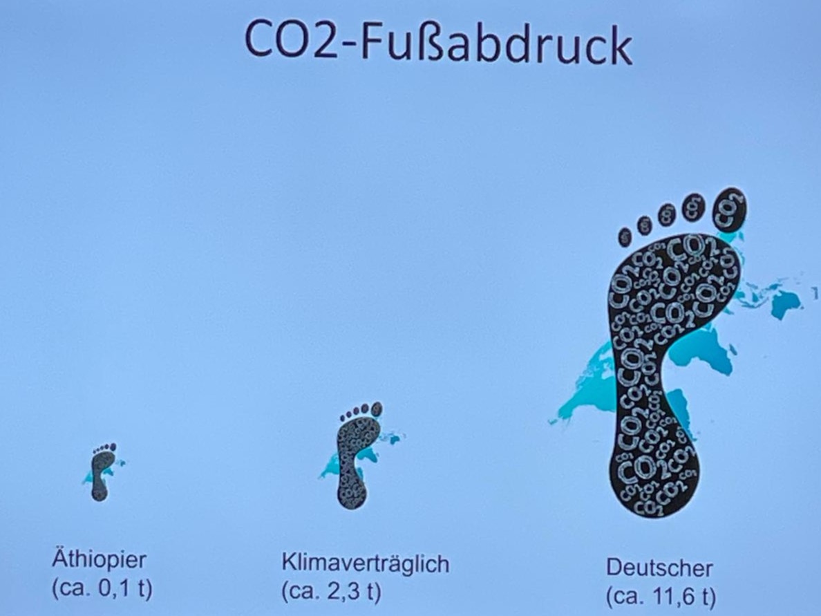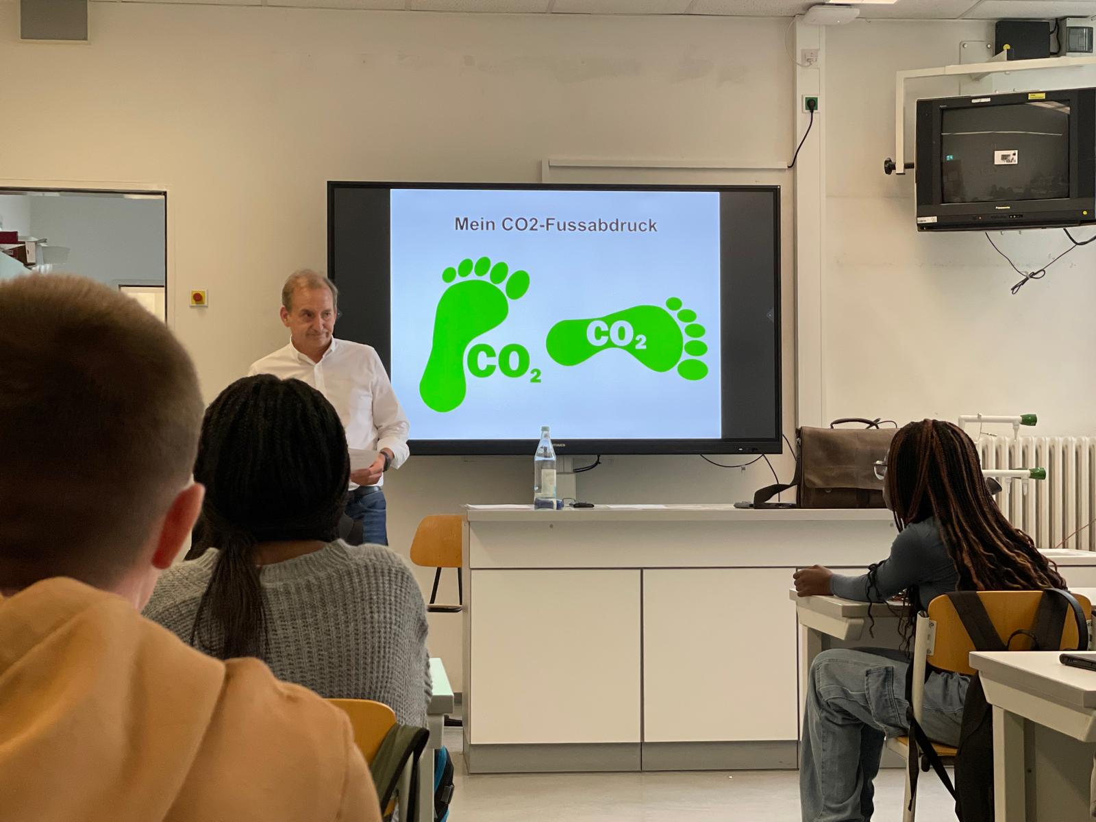 Zunächst gingen es um die Frage, welche Auswirkungen der Klimawandel hat und welche Gase klimarelevant sind. Mithilfe eines Fragebogens konnten alle ihren eigenen CO2-Fußabdruck bestimmen und mit Durchschnittswerten in Deutschland und anderen Ländern vergleichen. Außerdem konnten die Schülerinnen und Schüler nachschauen, wo es für sie noch Einsparpotential gibt. Welchen Einfluss haben Mobilität, Nahrung sowie Internet, Streaming und Social Media auf den CO2-Fußabdruck?