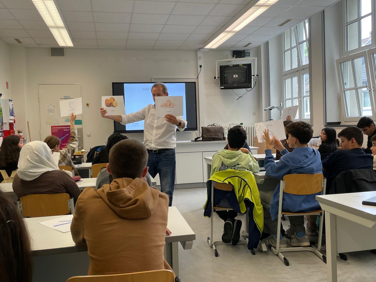 Am 17. September 2024 besuchte Herr Schultz von der Deutsche Umwelt-Aktion e.V. die neunten Klassen am Burggymnasium und führte mit den Schülerinnen und Schülern einen spannenden Workshop zum Thema „CO2-Fußabdruck“ durch.