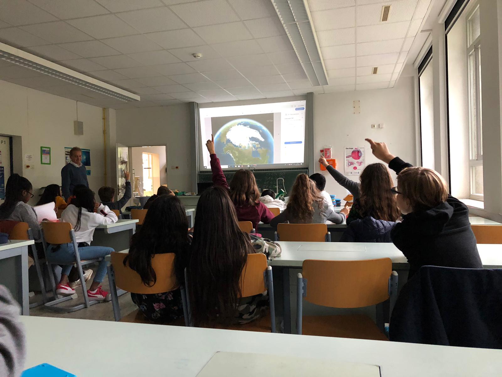 Manche der Schülerinnen und Schüler haben Alexander Gerst schon persönlich erlebt – beim Tag der Technik 2015, wo er als Schirmherr von seiner ersten Mission auf der ISS berichtete und alle auf die unglaublich interessante Reise ins Weltall mitnahm. Niemand wird seine Erzählung über den kleinen "blue dot", die Erde, vergessen, die von "da oben" so klein und so verletzlich wirkt.