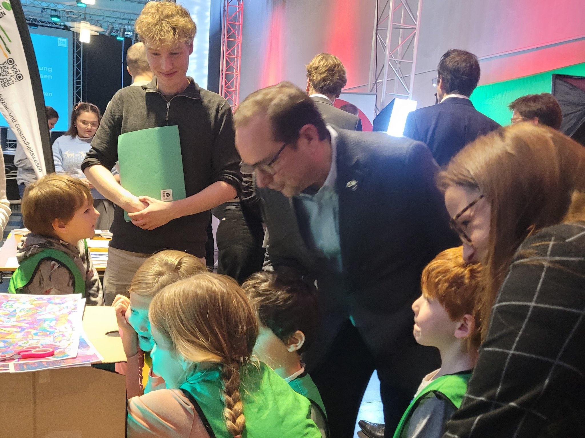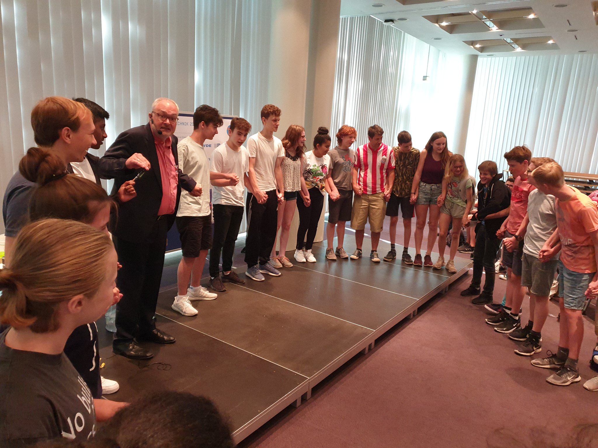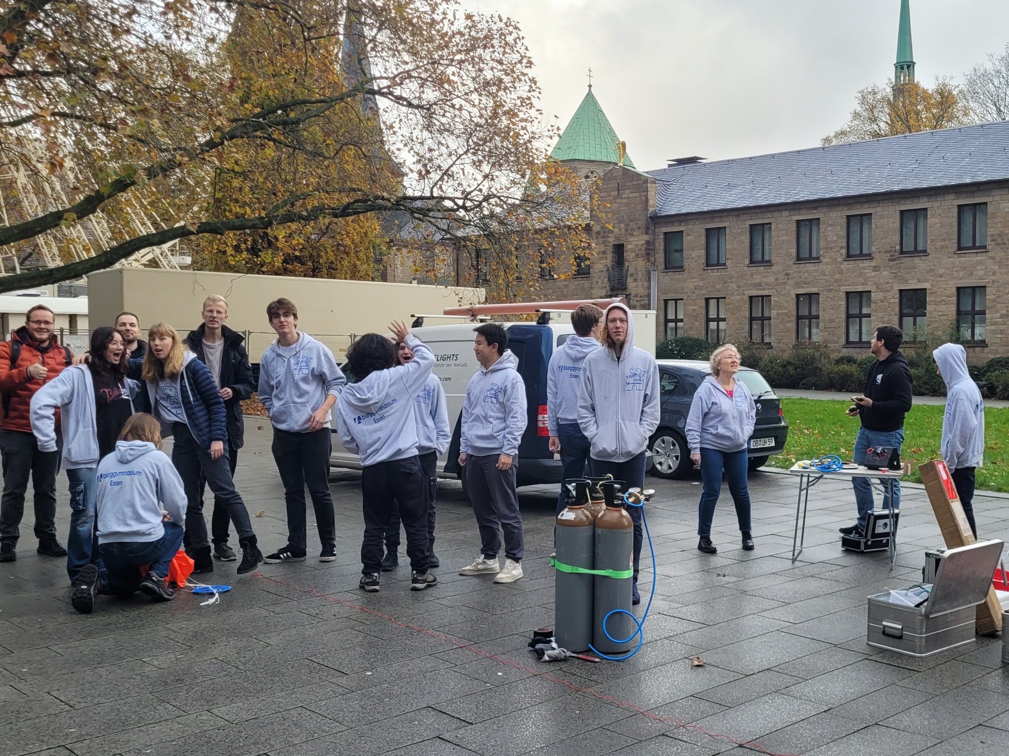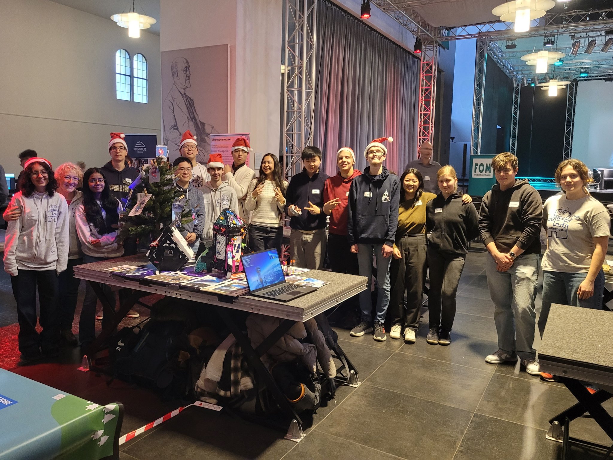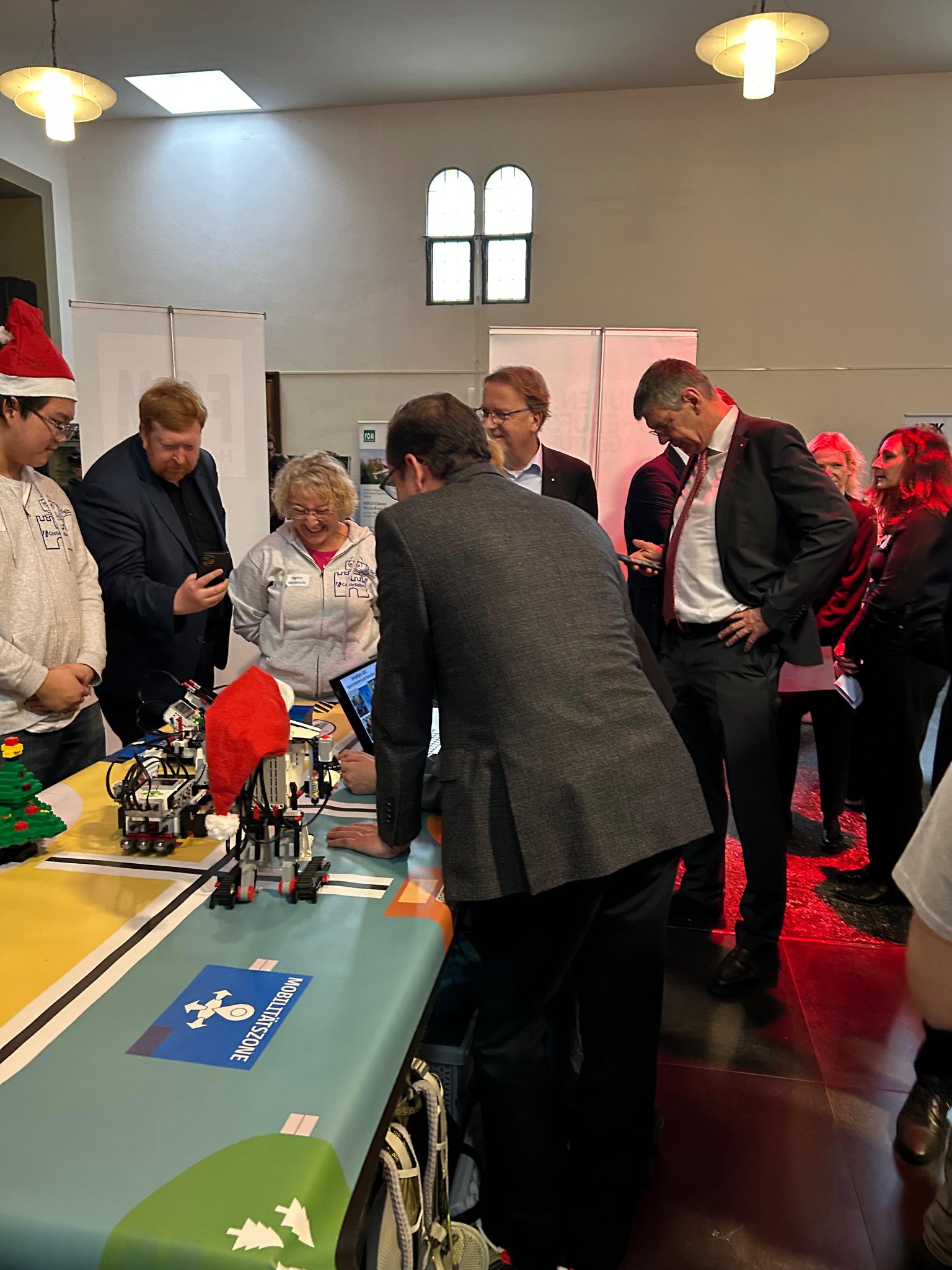 Der 11.12.2025 war ein ganz besonderer Tag: Das zdi-Zentrum MINT-Netzwerk Essen feierte sein 15-jähriges Jubiläum! Das Netzwerk hat sich als Aufgabe genommen, jungen Menschen für die MINT-Fächer zu begeistern. Das Burggymnasium nutzt regelmäßig die tollen Angebote des zdi-Netzwerks. Seit 2017 nimmt die Roboter-AG an den zdi-Roboterwettbewerben, an den Stratosphärenflügen sowie den Film- und KI-Film-Projekten teil. Die Burgschülerinnen und -schüler wurden eingeladen bei der Feier zwei Projekte vorzustellen: Die Roboter und den Stratosphärenflug. Es gab dort Infostände der Netzwerkpartner und man konnte an vielen Mitmachaktionen teilnehmen. Die besonderen Ehrengäste waren Frau Ina Brandes, die Ministerin für Kultur und Wissenschaft NRW sowie Herr Thomas Kufen, der Oberbürgermeister der Stadt Essen, die auch an der Podiumsdiskussion teilnahmen. In der Rede von Frau Ministerin Brandes wurde unsere Roboter-AG mit dem Hinweis auf die „beeindruckende Arbeit“, den besonders großen Anteil an Mädchen, Begeisterung und dem fantastischen Engagement ausdrücklich gelobt: „Bleibt bitte alle dabei, es ist ein Vergnügen Euch zuzugucken“.