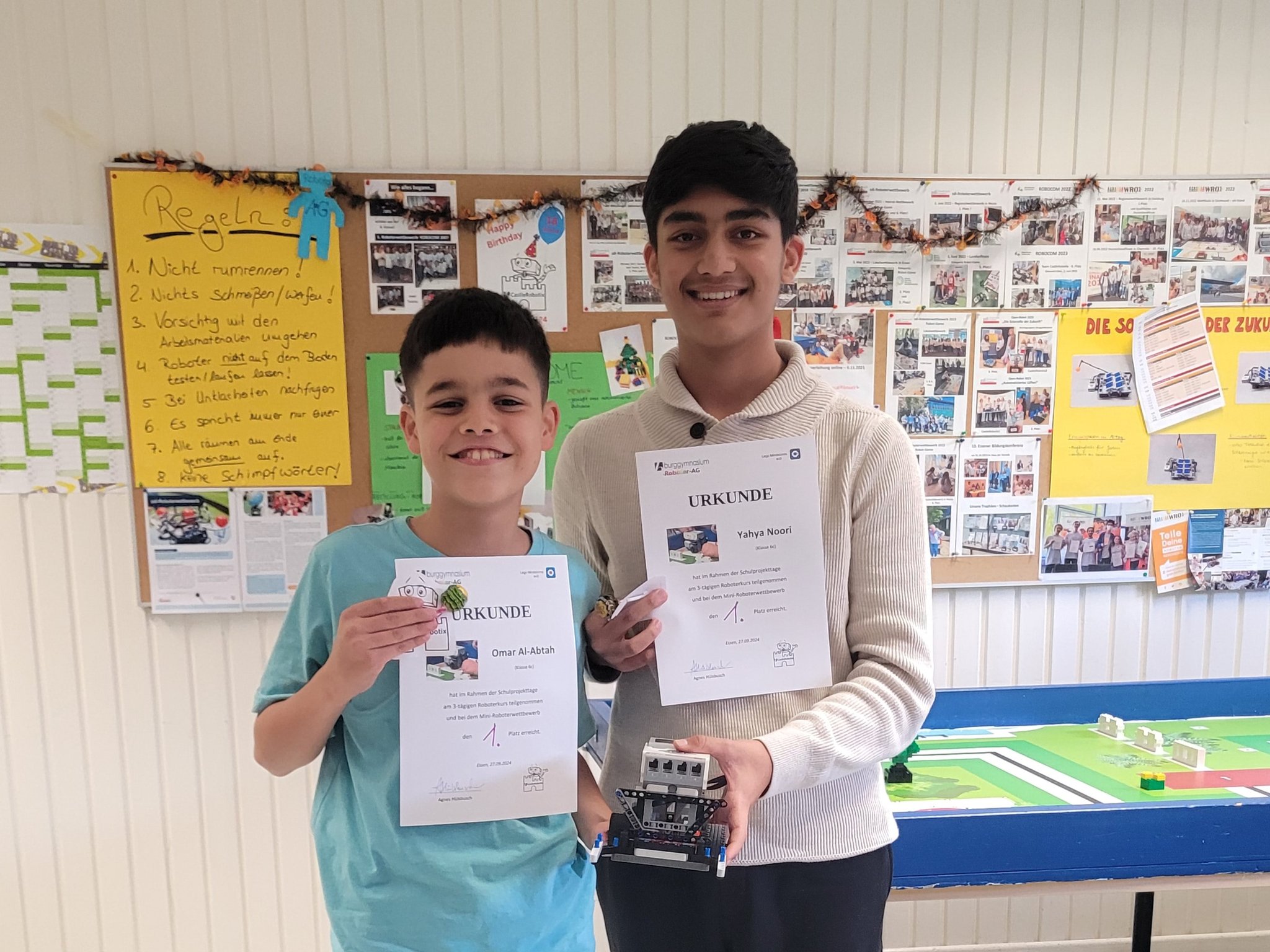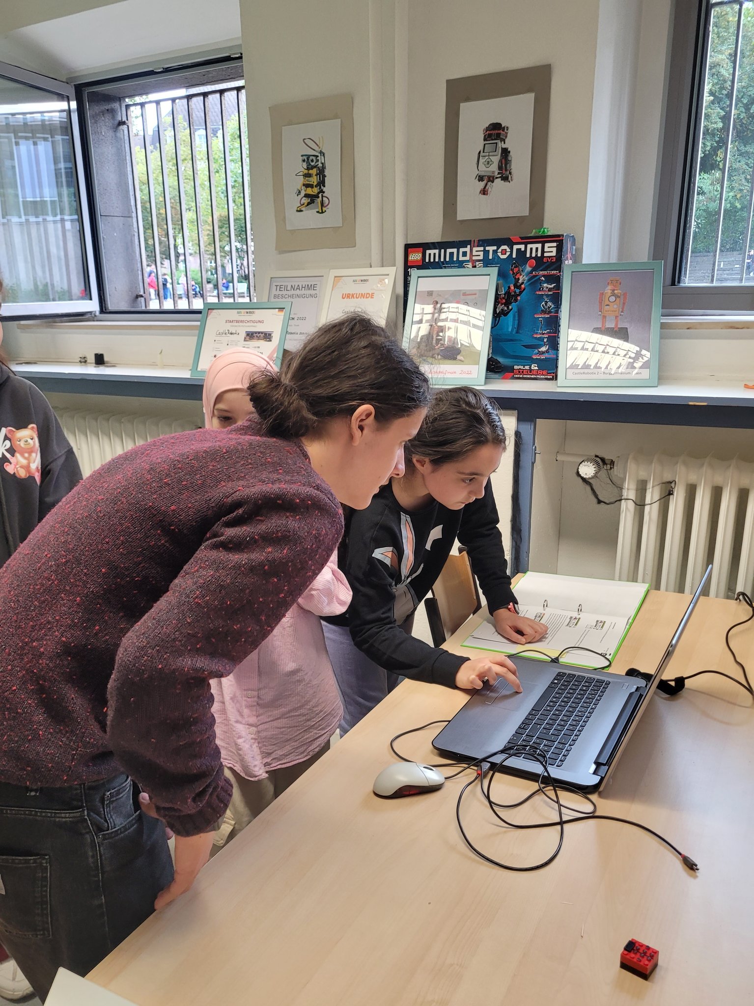 Während der Projekttage anlässlich des 200-jährigen Jubiläums wurde ein Programmierworkshop mit anschließendem Mini-Roboterwettbewerb für die Burgschülerinnen und Burgschüler aus den Klassen 5 und 6 angeboten. Obwohl alle Teilnehmenden keinerlei Vorkenntnisse hatten, haben sie in Teams tolle Lego-Roboter gebaut und selbstständig programmiert. Konzentriert und fleißig arbeiteten sie an den kniffligen Wettbewerbsaufgaben, wie z.B. das Retten von Marienkäfern oder Umpflanzen von Bäumen. Sie können sehr stolz auf ihre Leistungen sein! Wir von der CastleRobotix sind es auf jeden Fall! Nach dem Mini-Wettbewerb gab es eine Siegerehrung und Urkunden für alle teilnehmenden Schülerinnen und Schüler.