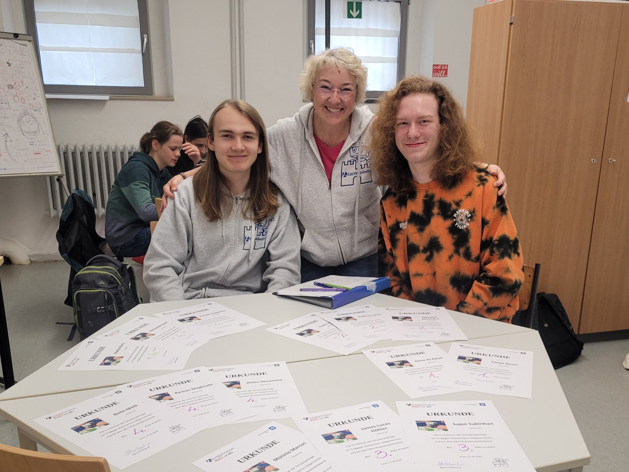 Die Jurytätigkeiten übernahmen die ehemaligen, langjährigen Mitglieder der CastleRobotix Richard, Henrik und Jan, die alle dieses Jahr ihr Abitur am Burggymnasium gemacht haben! Ganz besonderer Dank gilt Richard für die Entwicklung und Dokumentation der Wettbewerbsaufgaben! Herzlichsten Dank an die Drei!