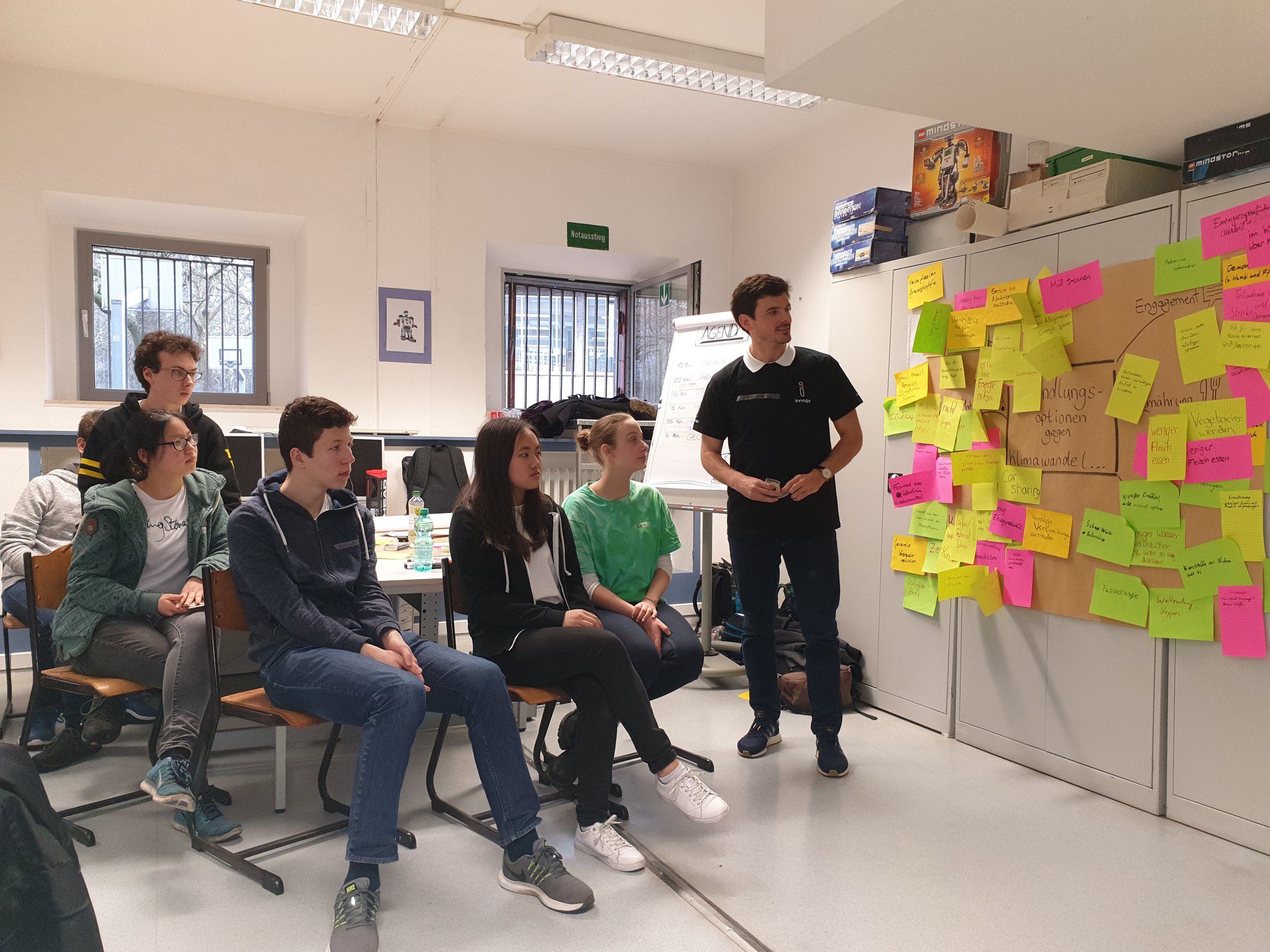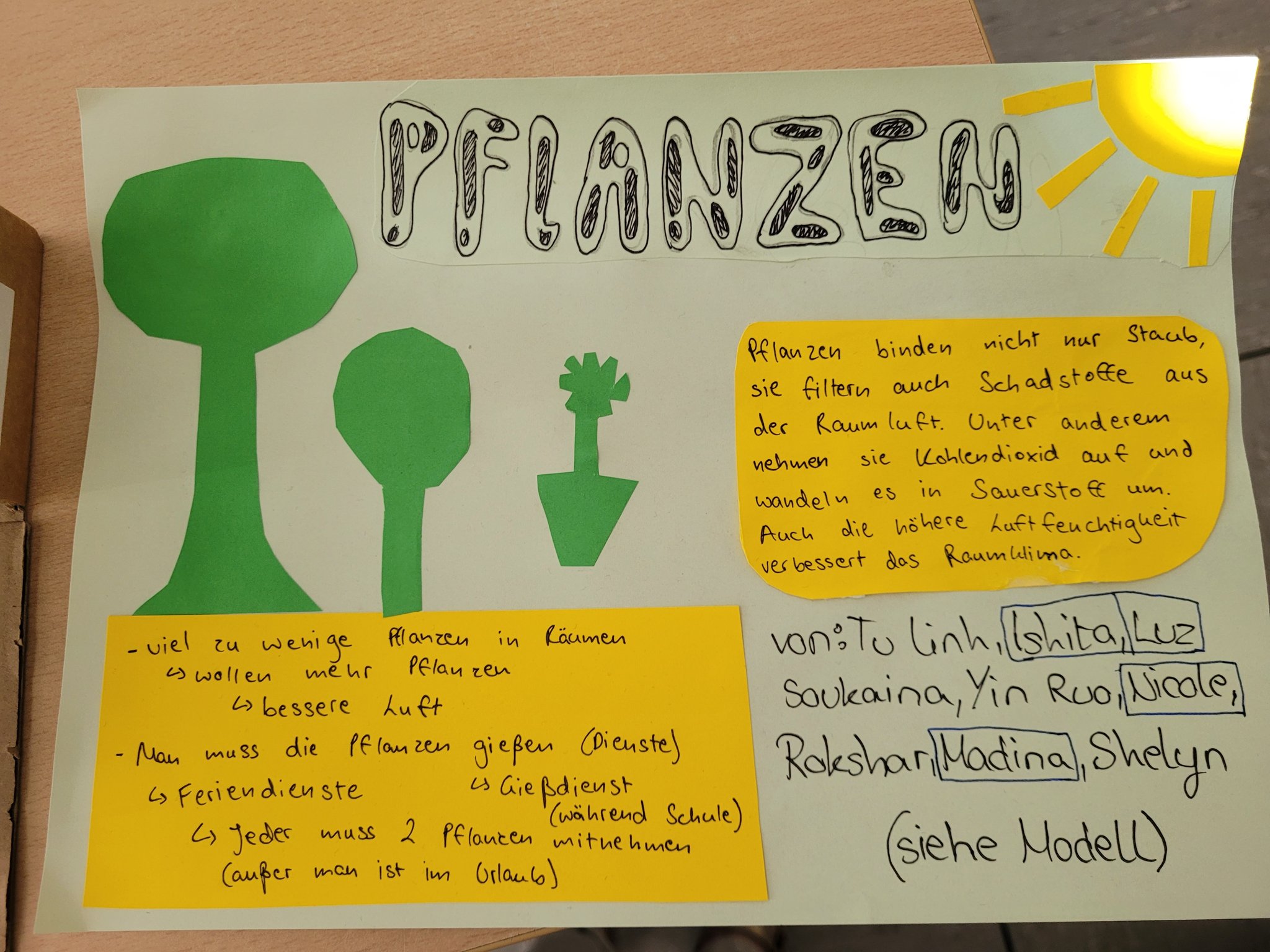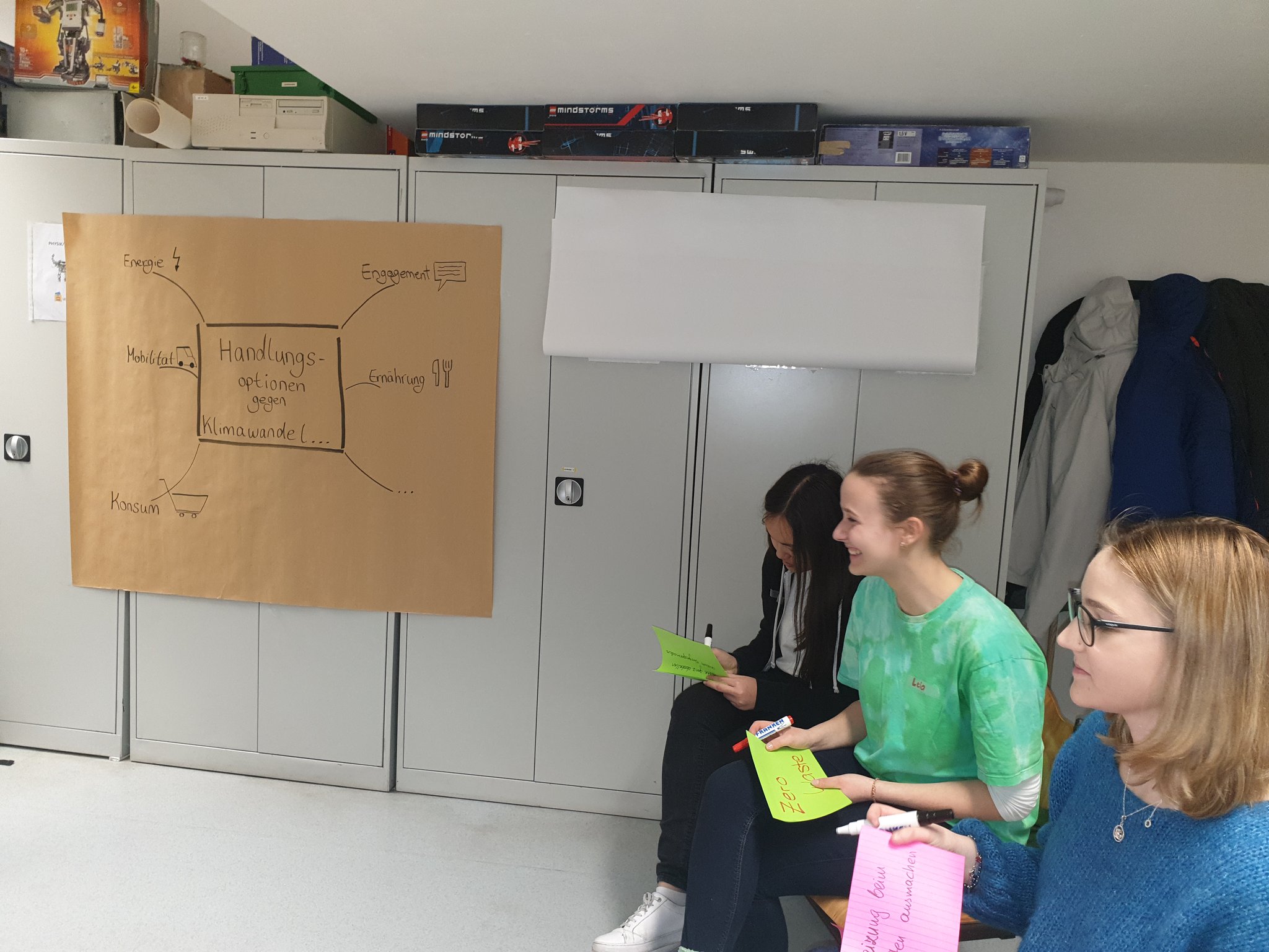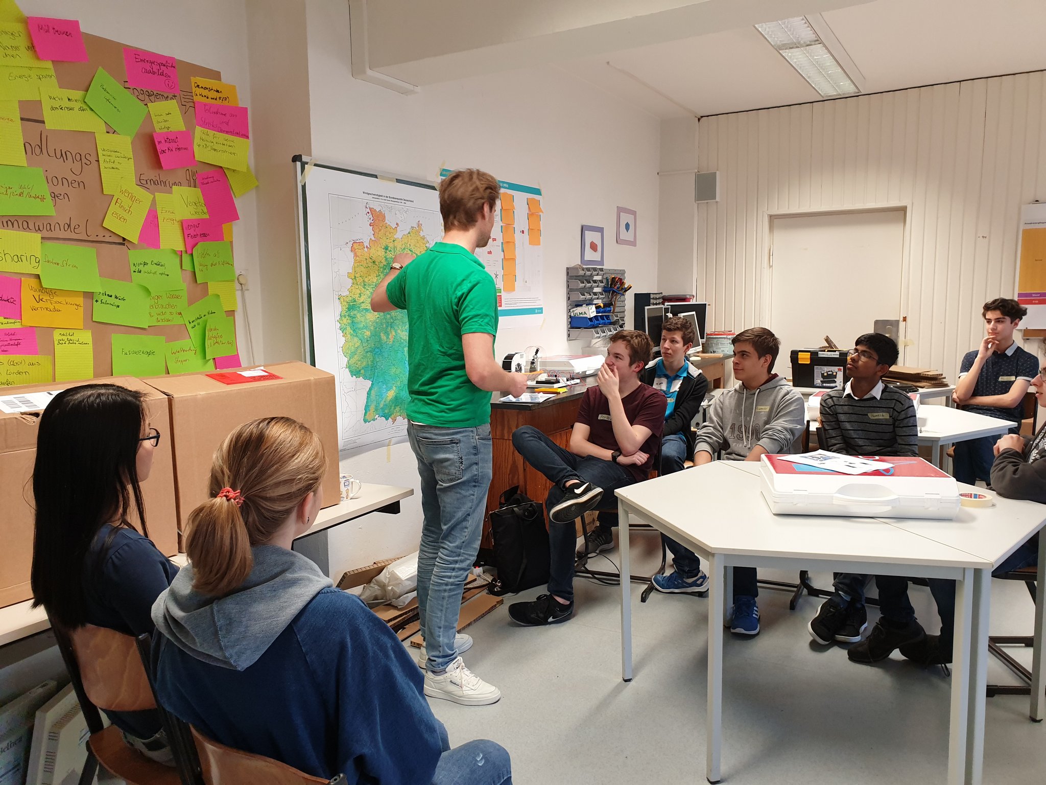 Am 12. Juni 2023 besuchte die Berliner Energie-Agentur die siebten Klassen des Burggymnasiums. In den Workshops beschäftigten sich die Schülerinnen und Schüler mit Klimaschutz und mit der Frage, was in ihrem Umfeld, in der Schule für mehr Nachhaltigkeit getan werden kann. Nach eingehender Recherche zu Klimaproblemen entwickelten die Schülerinnen und Schüler in Kleingruppen Modelle. Mit zahlreichem Bastelmaterial, wie z.B. Pappe, Verpackung und Knete gestalteten sie nach ihren Wünschen und Vorstellungen die Zukunft. Auf einem Plakat hielten sie ihre Ideen fest. Zum Abschluss des Kreativworkshops stellten die Schülerinnen und Schüler ihre kreativen Modelle und Plakate in der Klasse vor.
