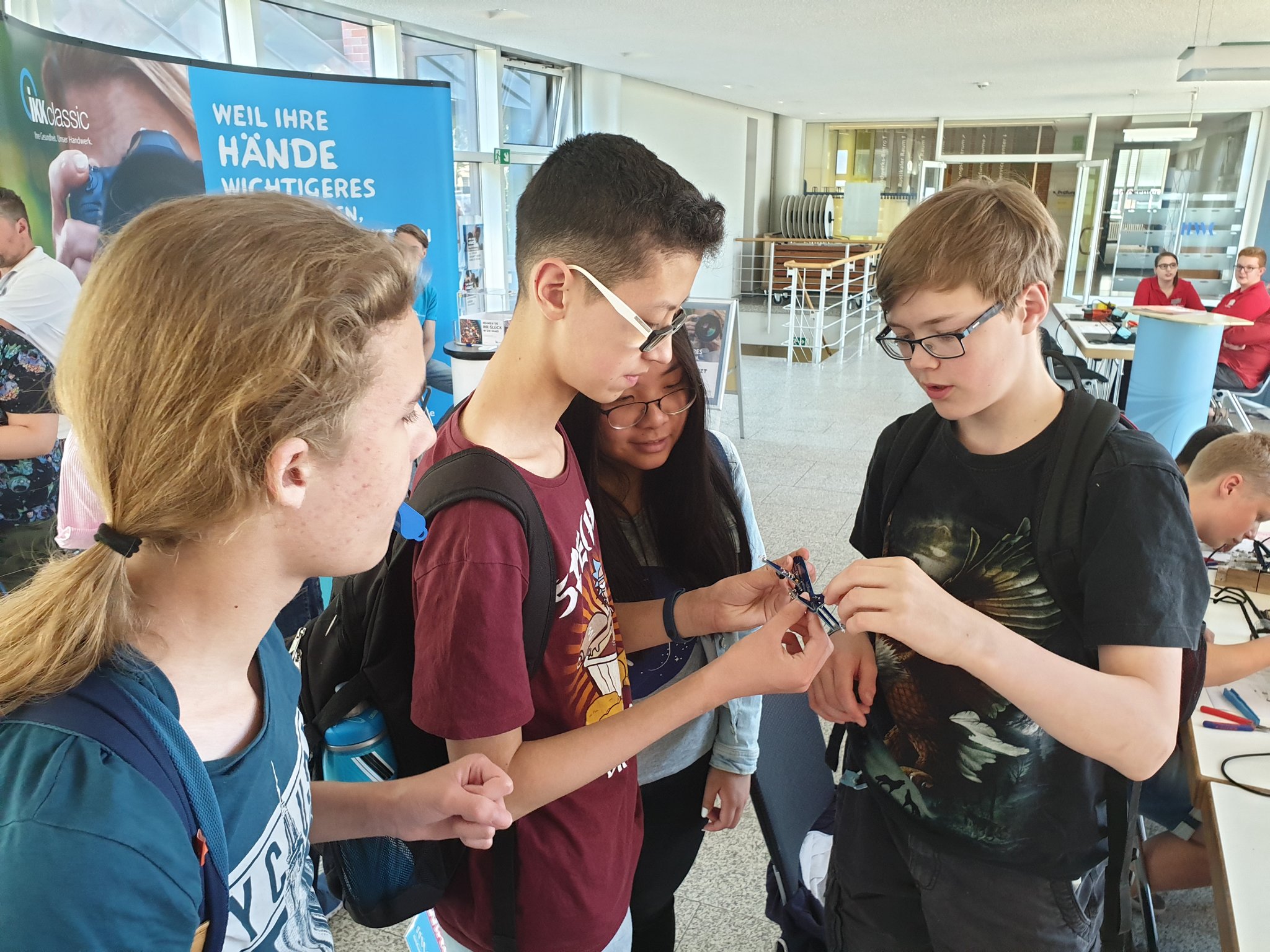 „Am Eingang war ein Roboter, den ich sehr cool fand. Ein paar Experimente haben nicht so geklappt, wie ich es erhofft hatte. Ein paar waren aber sehr gut und es war dort sehr spaßig.“ (Issa)