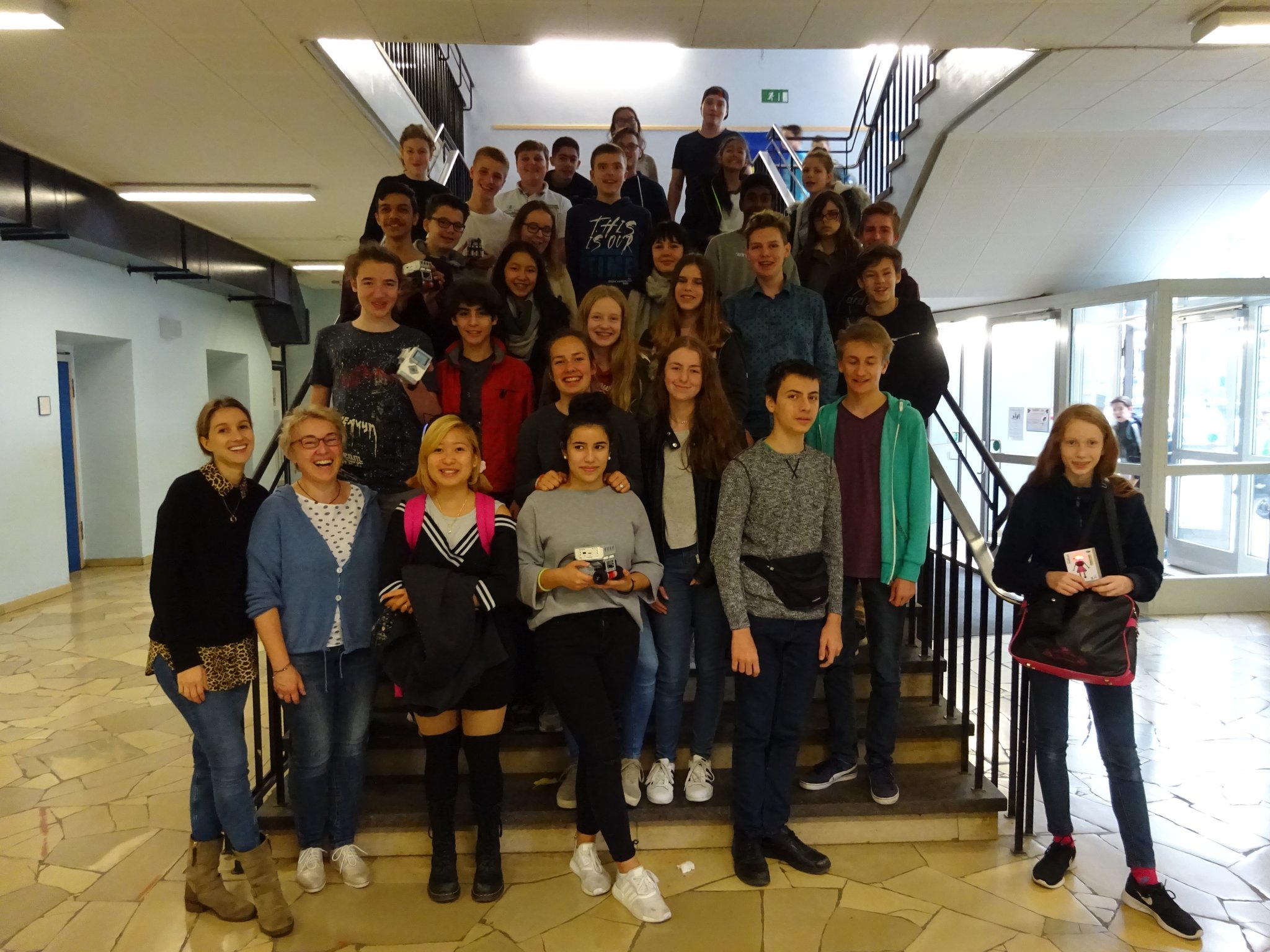 Der Physik/Technik-Kurs der 9. Klasse hat von 3. bis 6. Juni 2024 an dem viertägigen Filmprojekt „Stratofilms“ teilgenommen. Zunächst kam die Theorie, angefangen mit dem Bau und Funktion des Auges. Nach dem Ausflug in die Optik und der Erklärung wie eine Kamera funktioniert, ging es an praktische Übungen. Die Schülerinnen und Schüler lernten Tricks, wie man die besten Fotos macht und dann auch Filme produziert. Ausprobiert wurden Belichtung, Perspektive, Komposition und farbige Lampen. Fotografiert und gefilmt wurde mit dem eigenen Smartphone. Schließlich drehten und schnitten die Schülerinnen und Schüler in Kleingruppen Videos zu einem selbst ausgesuchten Thema. Die Ergebnisse lassen sich sehen!