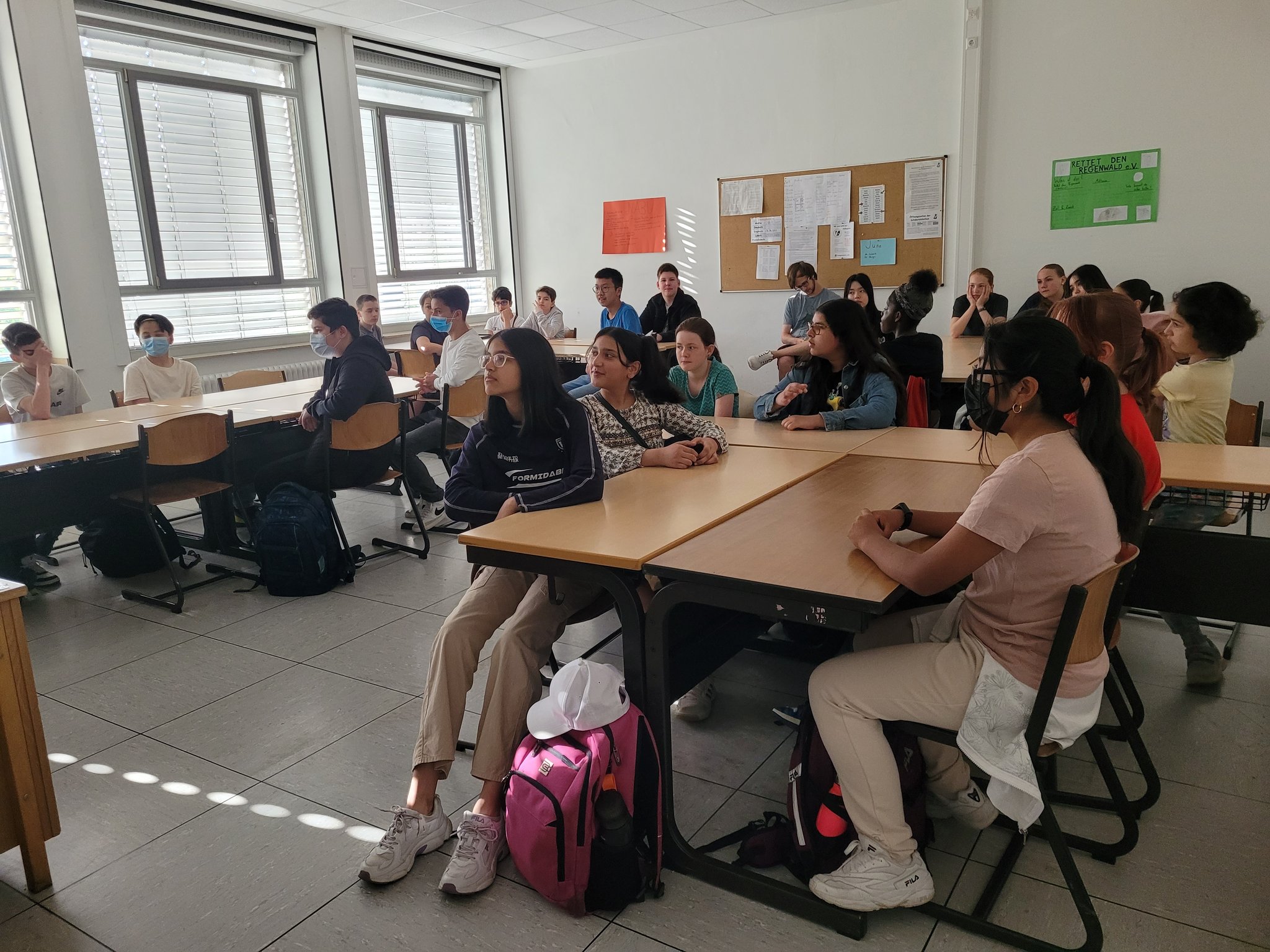 Die Klassen 8 beschäftigen sich mit dem CO2-Fußabdruck. Mit Staunen stellten fest, wie groß ihre eigene CO2-Produktion ist. Was ist virtuelles Wasser, erfuhren die Klassen 6. Sie staunten über die riesengroßen Mengen an Wasser, welches z.B. für die Herstellung von Avocado oder einem T-Shirt verwendet werden.