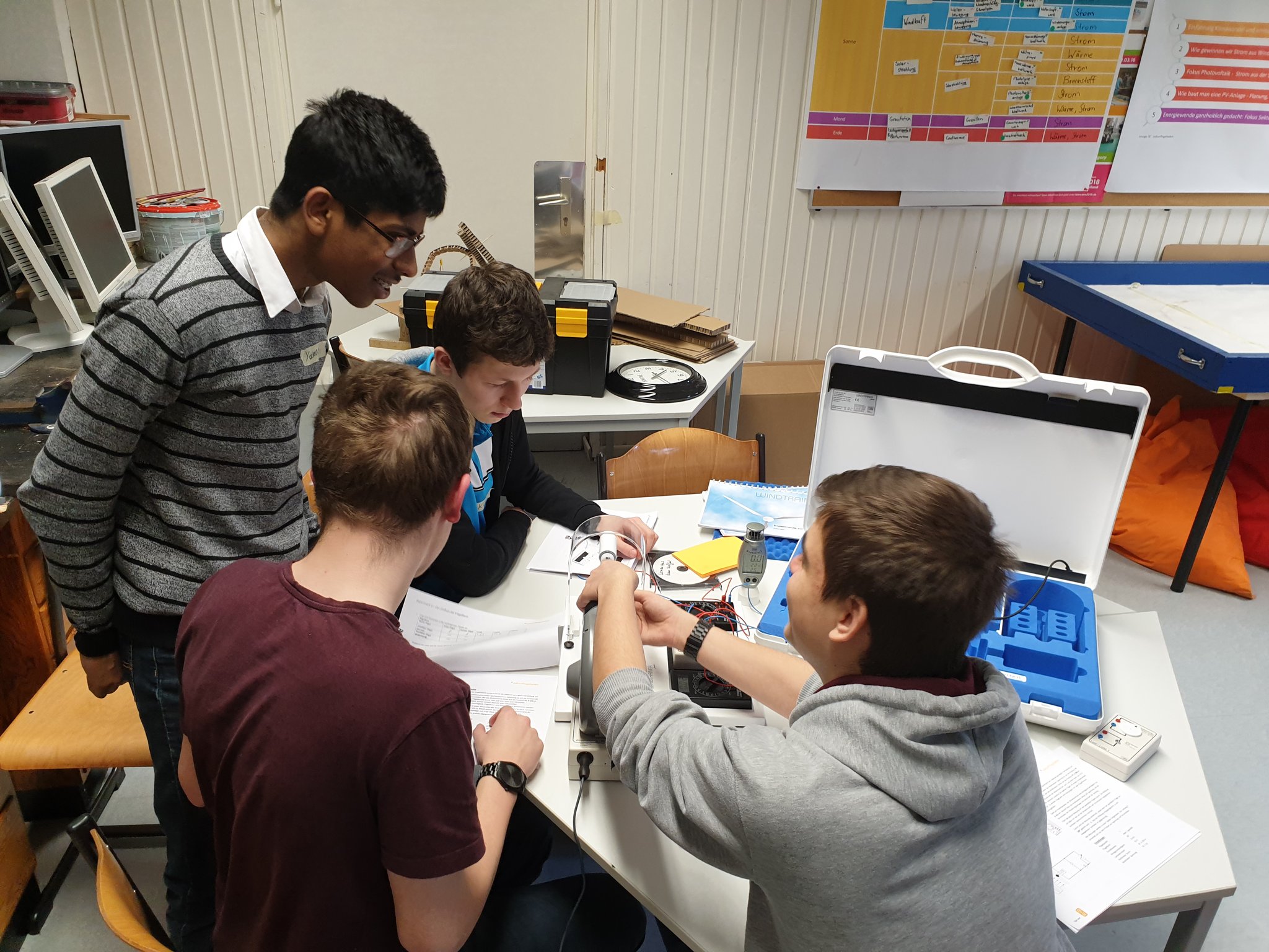 Nach der Vorarbeit, die die Innogy-Trainees geleistet haben, wurde die pädagogische Seite des Projektes mit den MINT-Lehrkräften an mehreren Terminen erörtert. Die Schülerinnen und Schüler der Burg forscht-AG haben danach alle Module selbst durchgeführt und im Anschluss an jeden Termin ihre Kommentare und Kritik dargelegt und Verbesserungsvorschläge erarbeitet. Am Ende entstand das fertige Bildungskonzept, welches jetzt für alle Interessierten zum Download zur Verfügung steht.