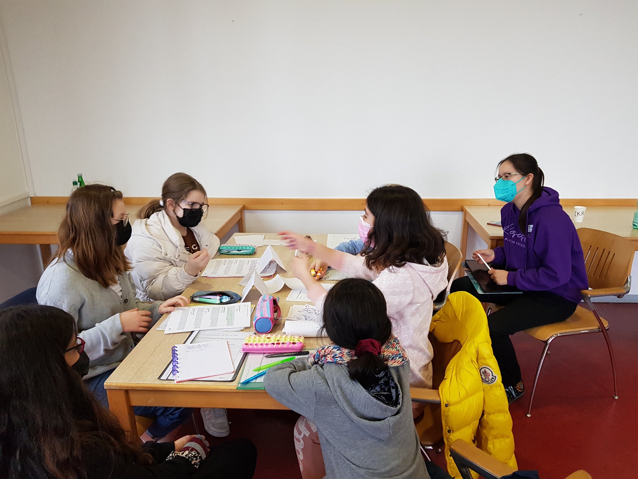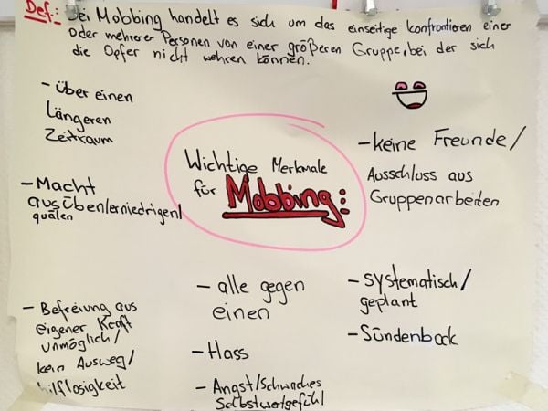 Ausgebildete Mediatoren aus den Jahrgängen 9, EF und Q1 haben gemeinsam mit einigen Schülerinnen und Schülern aus dem 8. Jahrgang, die sich gerade zu Mediatoren ausbilden lassen, die Zeit genutzt, um sich auszutauschen und gemeinsam Pläne für das weitere Schuljahr zu machen. Die erfahrenen Schlichter haben ihre Erfahrungen mit den 8-Klässlern geteilt und durch viele Beobachtungen dazu beigetragen, die Ausbildung zu vertiefen. Hierfür wurden neben vielen Rollenspielen, die ein grundlegender Bestandteil in der Mediatoren-Ausbildung sind, in unterschiedlichen Arbeitsphasen verschiedene Gruppen gebildet, die sich mit verschiedenen Themen auseinandergesetzt haben, wie zum Beispiel mit dem Thema "Mobbing" oder der Erstellung eines Konzeptes für die Präsentation der Mediatoren am Tag der offenen Tür.