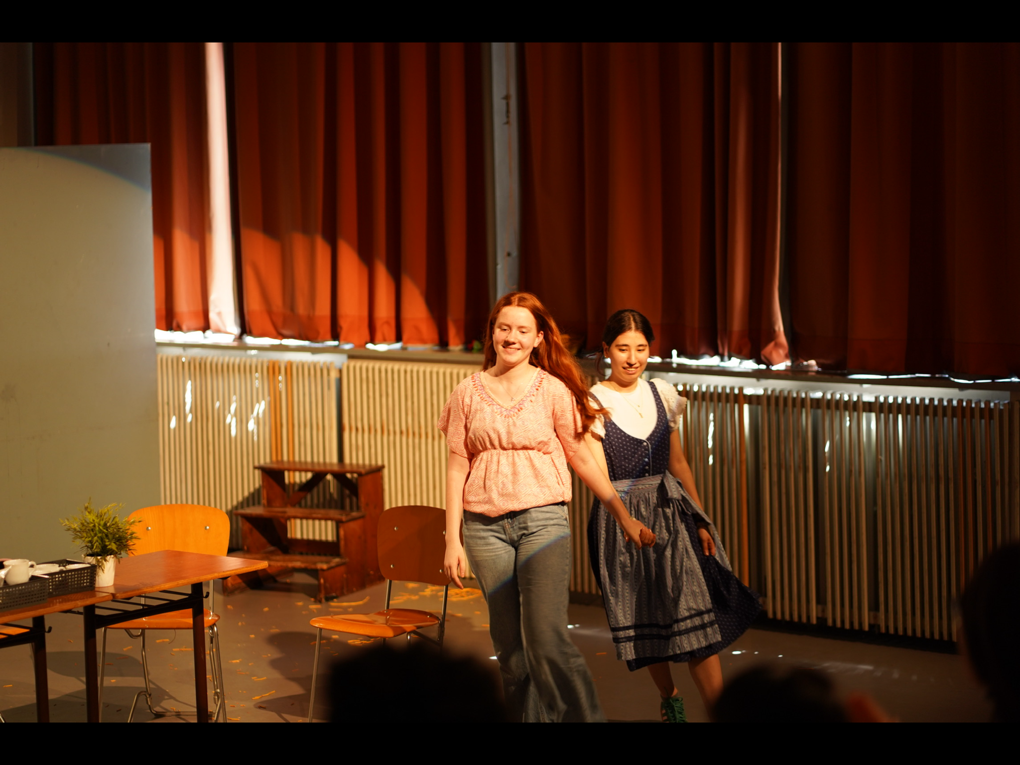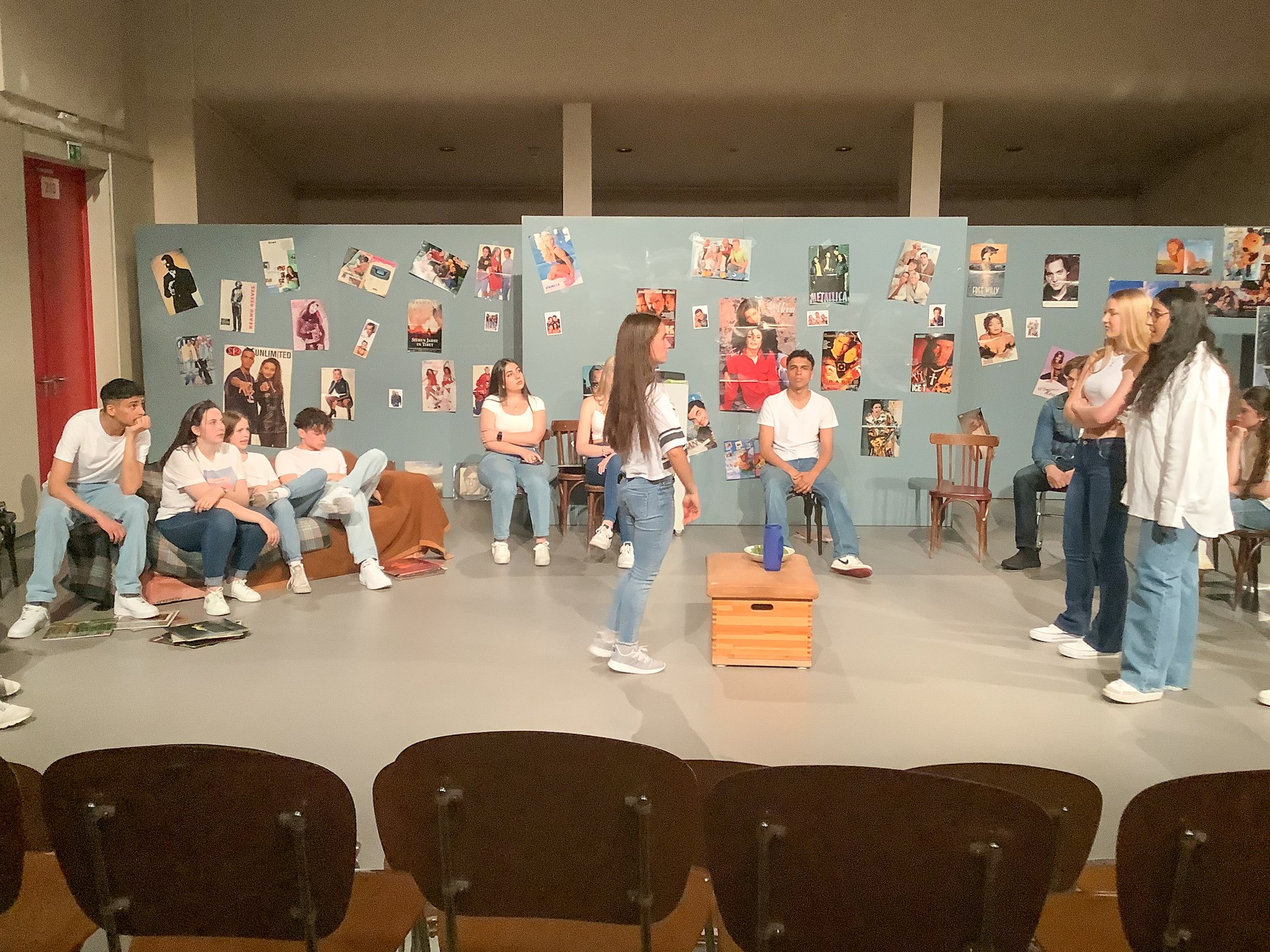 Am Sonntag, dem 22. Mai, zeigten die Schülerinnen und Schüler des Literaturkurses der Jahrgangsstufe 11/Q1 ihr neues Stück "Back to the 90s". Ausgehend von der Musik der 90er entstand eine Collage von Szenen, die sich mit der Technik, der Mode und bestimmten Phänomenen widmet, die es so nur in den 90ern gab.