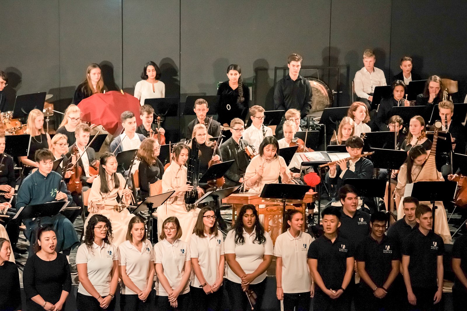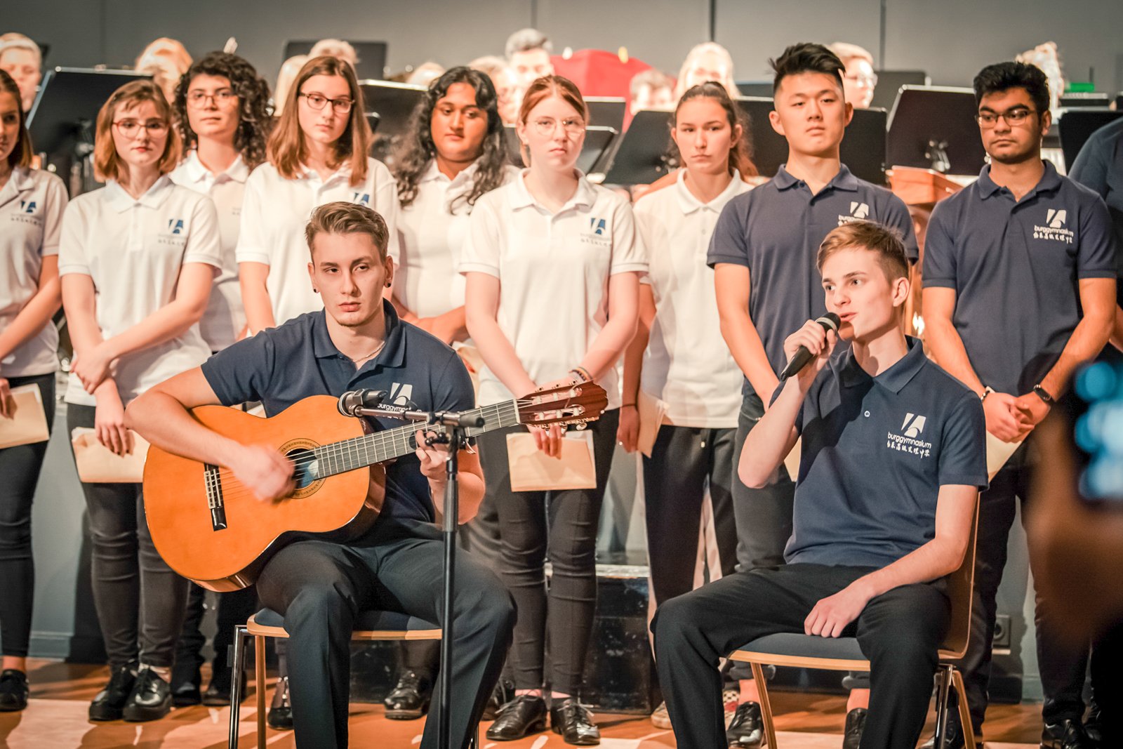 Gemeinsam mit den Gästen musizierten der Chinesische Chor, das Burgorchester sowie die Chöre der Unter- und Mittelstufe des Burggymnasiums.