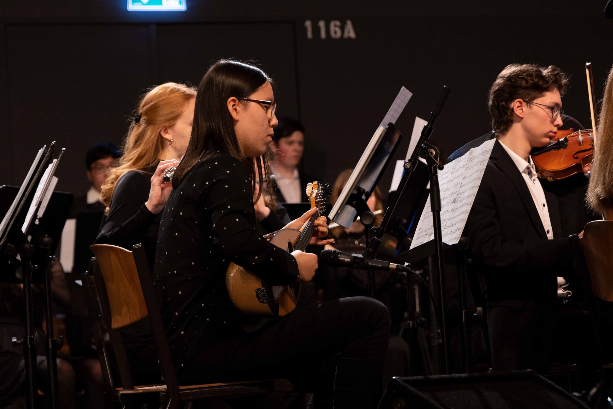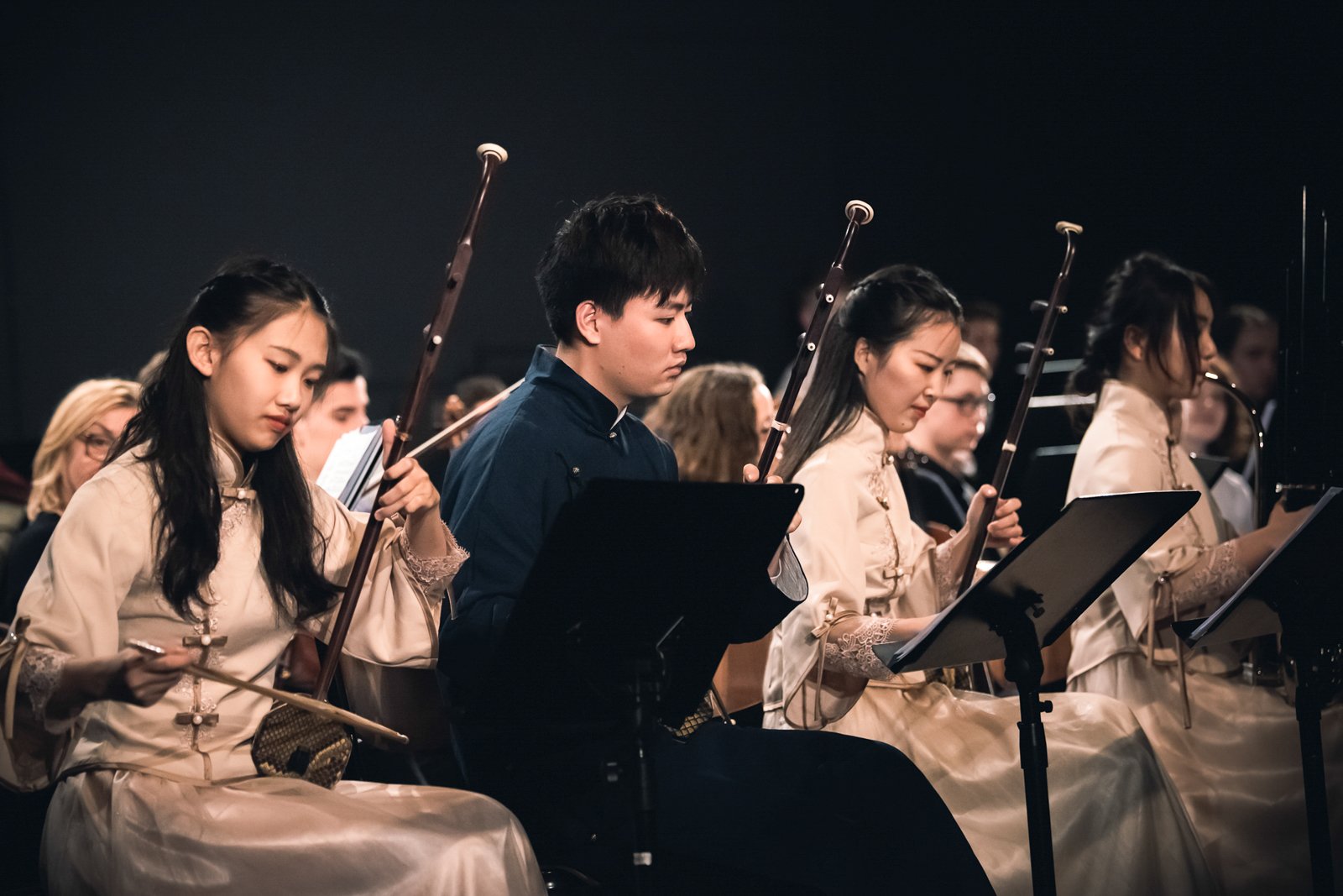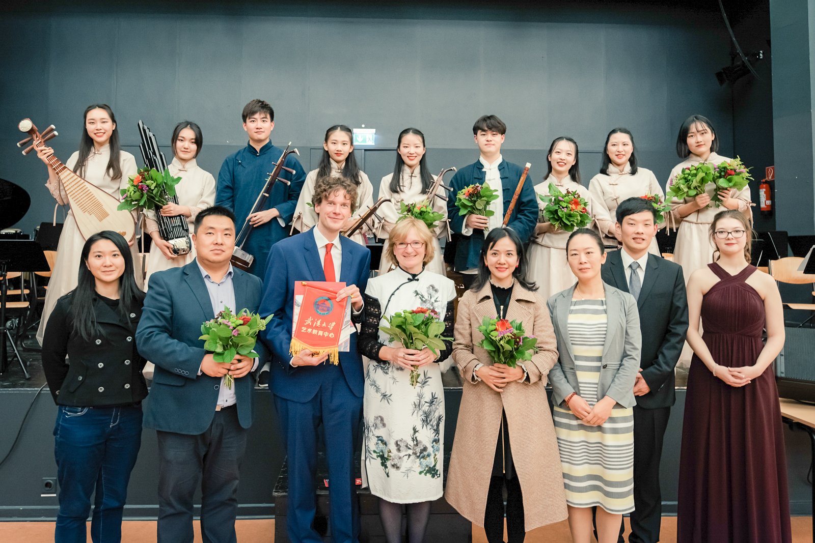 Das Ensemble aus neun Studierenden trat in der Aula auf. Im Gepäck hatten sie ihre traditionellen chinesischen Instrumente: Erhu (ein Streichinstrument,) Pipa (Laute), Yangqin (Hackbrett), Guzheng (Zitter), Bambusflöte, Ruan (Laute) und Sheng (Mundorgel). Mehr als 300 Zuschauer durften am Abend chinesischen Klängen lauschen und sich für einen Augenblick in das Reich der Mitte entführen lassen.