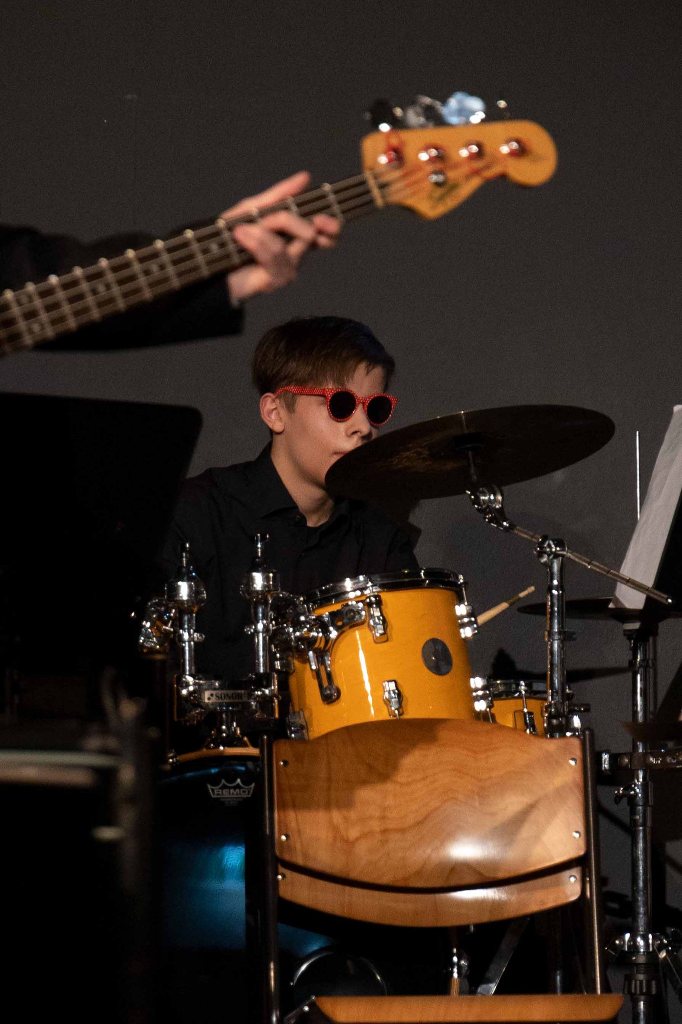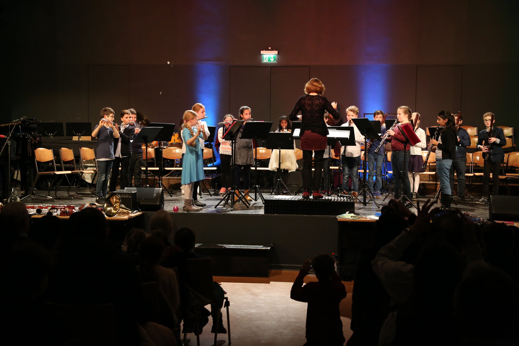 Bis auf wenige Ausnahmen begaben sich die meisten Schülerinnen und Schüler mit viel Experimentierfreude und kreativer Begeisterung an die Arbeit. Dazu nutzten sie Musikinstrumenten wie z. B. Klavier, Basstrommel, Xylophon, Cabasa, Cajon, Triangel, Fagott, Boomwhackers, Heulschläuche und Violine.