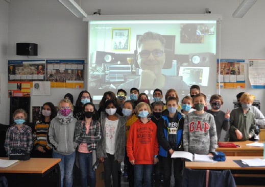 Zum Abschluss lud die Klasse Helge Borgarts zu einem Komponistentalk ein. Weil das Gespräch wegen Corona nicht in Realpräsenz stattfinden konnte, wurde der Komponist per Skype in den Musikraum dazugeschaltet. Hier ergab sich nun ein facettenreiches Gespräch, bei dem die Schülerinnen und Schüler all ihre Fragen stellen konnten zum Beruf eines Komponisten, zur Gamemusic, zur Produktion von Computerspielen und auch zur Persönlichkeit von Helge Borgarts. Für die Schülerinnen und Schüler war es „die beste Musikstunde aller Zeiten“.