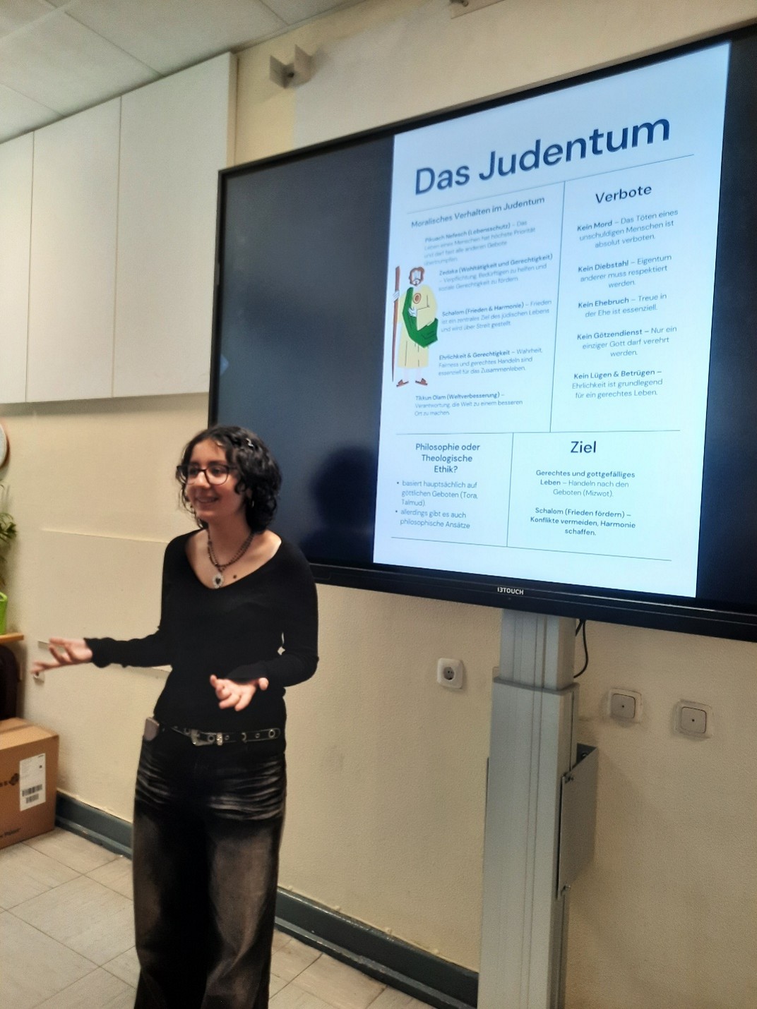 In der Jahrgangsstufe 8 erhalten die Schülerinnen und Schüler einen Einblick in die Ethik der fünf großen Weltreligionen Christentum, Judentum, Islam, Hinduismus und Buddhismus. Die Frage nach moralisch richtigen Handlungen wird hier aus verschiedenen Perspektiven beantwortet. Was soll ich tun? Was darf ich nicht tun? In den verschiedenen Religionen gibt es eine Vielzahl von Regeln, Geboten, Verboten und Richtlinien welche uns in unserem Leben leiten sollen.